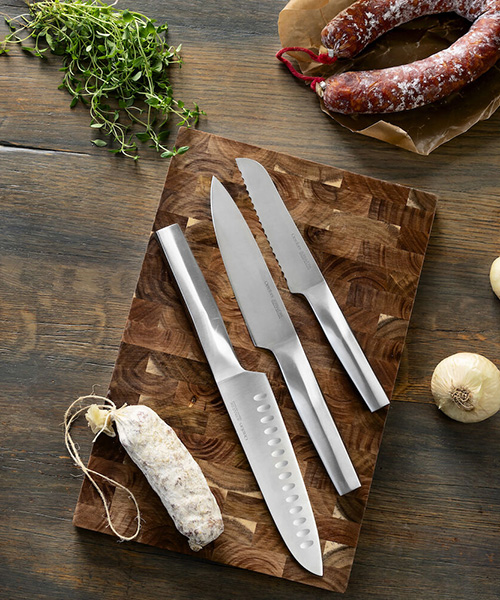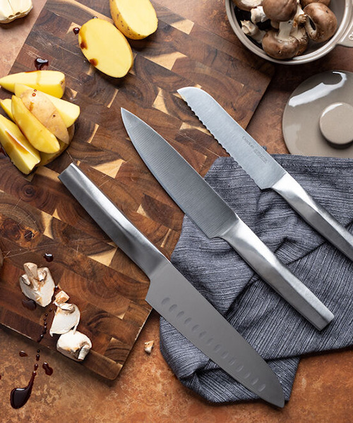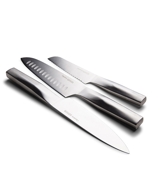 Det kompletta knivset från Orrefors Jernverk. Här har vi samlat alla knivar som är ett "måste" i köket. Du får en kockkniv, en japansk kockkniv och en tomatkniv av högsta kvalitet. De kommer i en snygg presentkartong och är en utmärkt gåva. Jon Eliason står bakom den moderna designen.