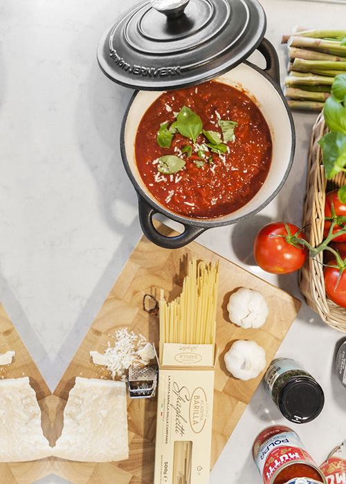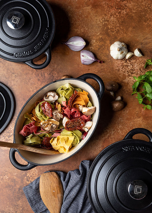 Emaljerad gjutjärnsgryta. En gedigen gryta som passar både långkok och vardagsmat.