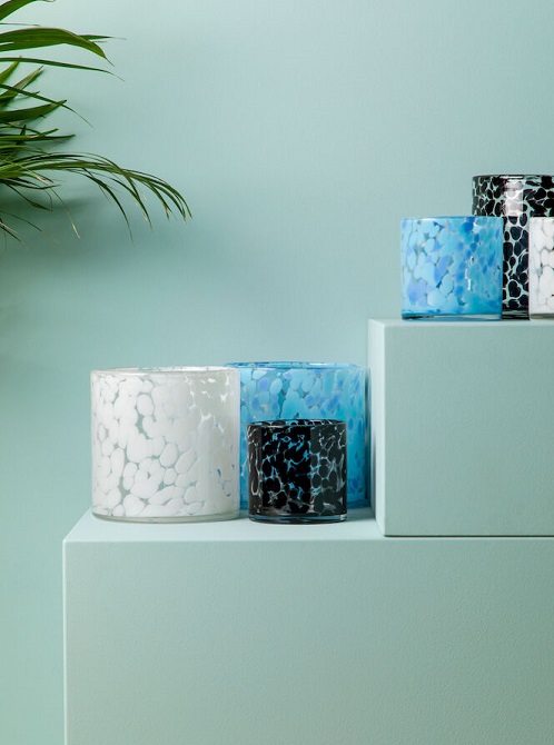 Handgjord ljuslykta som också kan användas som kruka. Varje glaslykta är unik med sitt fläckiga mönster. Lyktorna sprider ett vackert ljus och skapar mysig stämning. Finns i tre olika färger och blir snygga att kombinera ihop med den större varianten DJ411246. Varje kruka/glaslykta är unik tack vare dess handgjorda design.