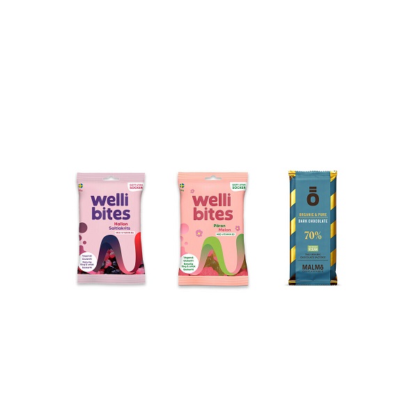 Wellibites är ett sockerfritt godis med naturliga smak och färgämnen, helt vegansk och vitaminberikade. Ägget innehåller de goda smakerna Hallon & saltlakrits och Päron & melon samt en mörk ekologisk chokladkaka från Malmö chokladfabrik, helt utan tillsatser och spår av nötter och andra allergener.