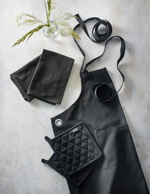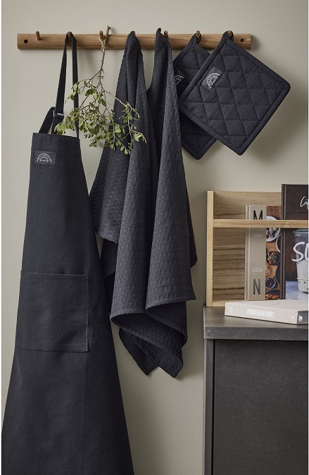 Piffa upp köksatmosfären med ett läckert kökstextil-set med två kökshanddukar och två grytlappar i svart 100% återvunnen bomull. Kökstextilier i fina designer, i både klassiska och moderiktiga färger. Textilierna tvättas i 40 grader. Överskottsfärg kan förekomma, speciellt vid mörka färger, och vi rekommenderar därför separat tvätt. Använd tvättmedel utan optiskt vit- och blekmedel. Krympning 5-10 %. Textilen kan sträckas slät eller strykas.