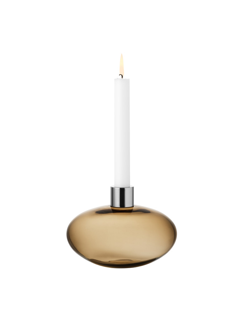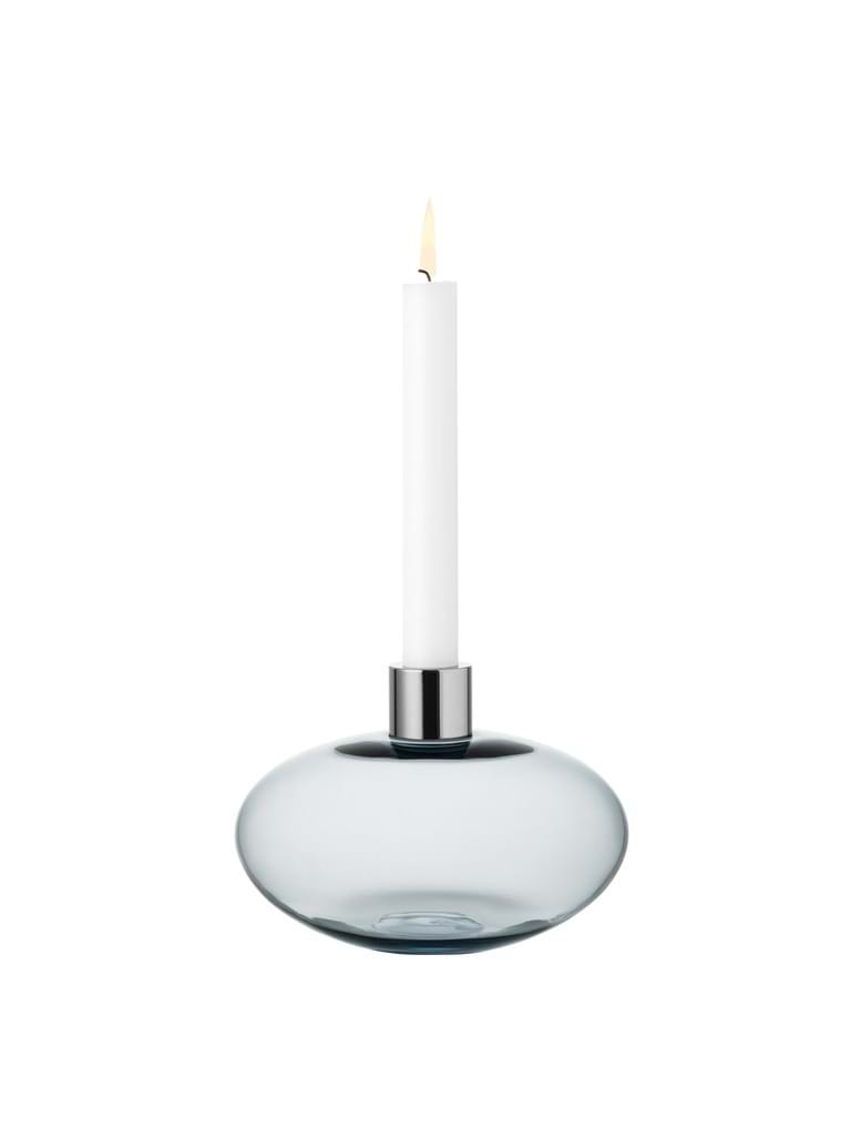 Ljusstake från Kosta Bodas PLUTO serie. Bland gnistrande, böljande och mystiska planeter tar Pluto plats i Lena Bergströms universum. Med sin munblåsta bas i infärgat glas och ljushållare i rostfritt stål får den ett skandinaviskt uttryck som passar i hem där ren design står högt på önskelistan. Ljusstaken är 124x166mm stor och väger 0.8kg.