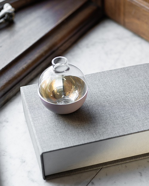 Pomme är en sfärisk liten vas och ljushållare tillverkad av klart glas och polerad mässing. Pommes form och utseende är inspirerad av naturens runda former. Namnet Pomme kommer från det franska ordet för äpple, varifrån produkten lånat sin organiska form. Pomme kan användas som en vas för snittblommor och mässingsbasen som en ljushållare för värmeljus.