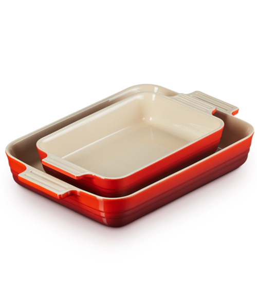 Unna dig själv ett par Le Creuset-klassiker i två praktiska storlekar: 26 och 32 cm. Dessa rektangulära ugnsformar i stengods passar perfekt för alla möjliga typer av matlagningsuppgifter från att marinering och ugnsrostning till bakning och servering. Praktiska handtag gör dem enkla och säkra att lyfta medan den hållbara emaljen är beständig mot fläckar, flisor och sprickor.