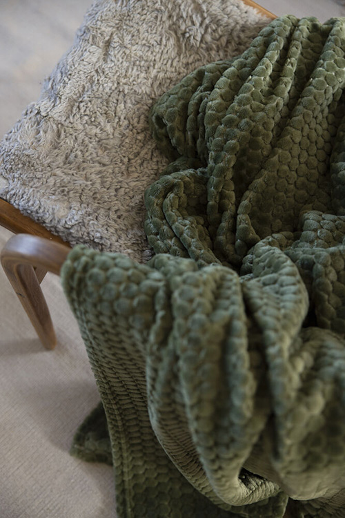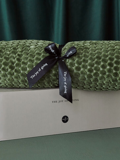 Maja är en underbart lyxig, mjuk och stor pläd i ett vackert mönster som påminner om sö eller mossa. Maja finns i vitt och grönt. Inslagen med ett rosettband i en snygg presentkartong.