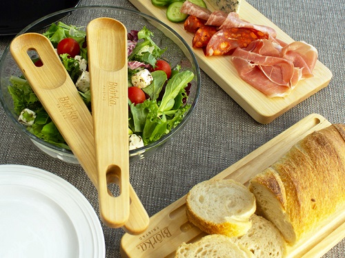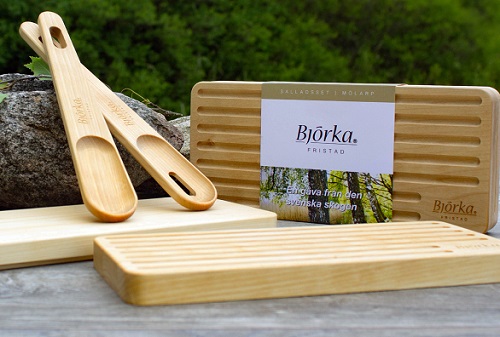 En sallad kan vara så mycket: endast lite grönt till middagen, eller en fräsch, färggrann och en fantastisk måltid i sig själv. Oavsett, så förtjänar den att serveras med stil! Med Björka Fristads salladsbestick Mölarp behöver man heller inte snåla med vinägretten i salladen, då ena sleven har ett urfräst avrinningshål.