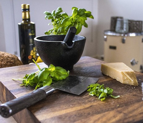 Morteln kan även användas "från jord till bord", det vill säga att du inte bara använder den till att krossa kryddor eller örter utan att man även färdigställer och serverar i morteln. Till exempel en guacamole serveras gärna direkt i samma mortel som du krossar vitlök, svartpeppar och flingsalt och sen vänder ner avocado, citron och lite zest. Ställ gärna fram morteln med alla ingredienser till guacaolen och låt gästerna vid bordet slå ihop den.