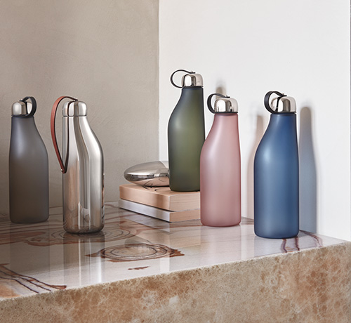 Aurélien Barbrys unika och stilrena tolkning av en drickflaska har en organisk, asymmetrisk form i mörkblå BPA-fri Tritan-plast som är hållbar och lätt att hålla. Locket i rostfritt stål hålls på plats med en rem som även fungerar som bärögla.   Strl: Höjd 23 cm, Volym: 0,5 L Material: BPA-fri Tritan-plast