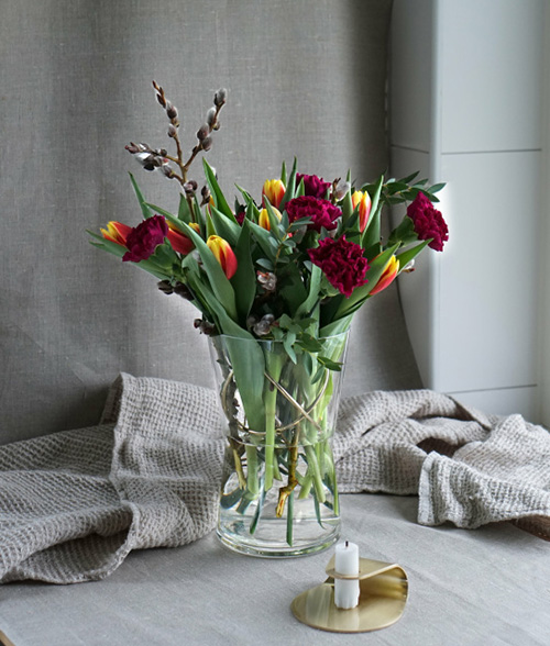 En vacker vas som är lätt att placera. Den smarta kulan i rostfritt stål gör det superenkelt att arrangera blommorna, även om du bara har några få. Vasen är så vacker att du aldrig behöver ställa undan den i ett skåp