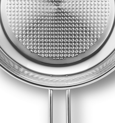 Stekpannan med ”våfflad” botten har ett unikt mönster som bidrar till att maten inte bränner fast. Den våfflade bottnen håller fettet fördelat under maten och skapar en naturlig släppförmåga. Vi rekommenderar att stekpannan hettas upp på medelvärme efter att fettet har tillförts. Höj därefter temperaturen något, lägg maten i stekpannan och justera till önskad tillagningstemperatur. Så snart en stekyta har bildats kan maten flyttas runt i stekpannan och vändas.
