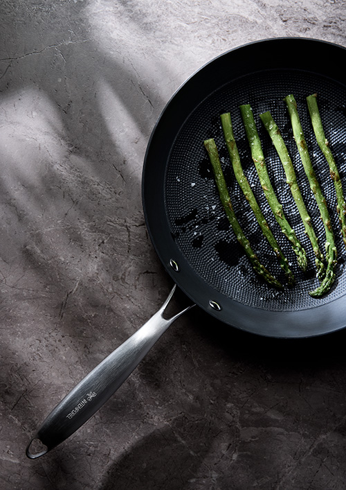 Med sin lägre vikt än en “vanlig” gjutjärnsstekpanna är den enklare att hantera men bibehåller ändå gjutjärnets goda värmefördelningsförmåga.
