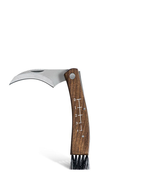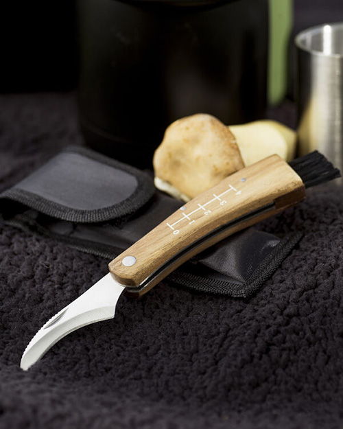 En praktisk svampkniv som har borste i ena änden och linjal på träskaftet. Kniven levereras i ett praktiskt fodral. Ett måste för svampplockaren och för en lyckad tur i skogen.