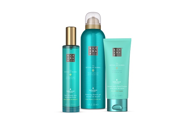 The Ritual of Karma är utformad för att hjälpa dig att utstråla positivitet och påminna dig om att leva med god karma och vara vänlig. Den är berikad med vitt te och lotusblomma och har en ny och förbättrad formula med Hydra-Boost Complex.