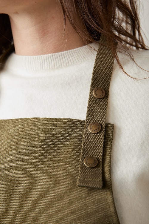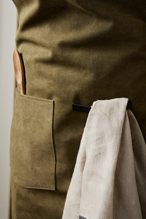 Förkläde tillverkad av 87 % verifierat återvunna material. Det här stilrena förklädet är ett praktiskt kökstillbehör med en underbar design. Förklädet har en ficka på framsidan och en ögla för att hänga redskap eller kökshanddukar, så att du har allt till hands när du är mitt uppe i matlagningen. Förklädet har ett mjukt och justerbart nackband för ökad komfort. Tillverkad av GRS (Global Recycled Standard) certifierade återvunna material. GRS certifiering säkerställer en helt certifierad leveranskedja av de återvunna materialen. Totalt återvunnet innehåll är baserat på total produktvikt.