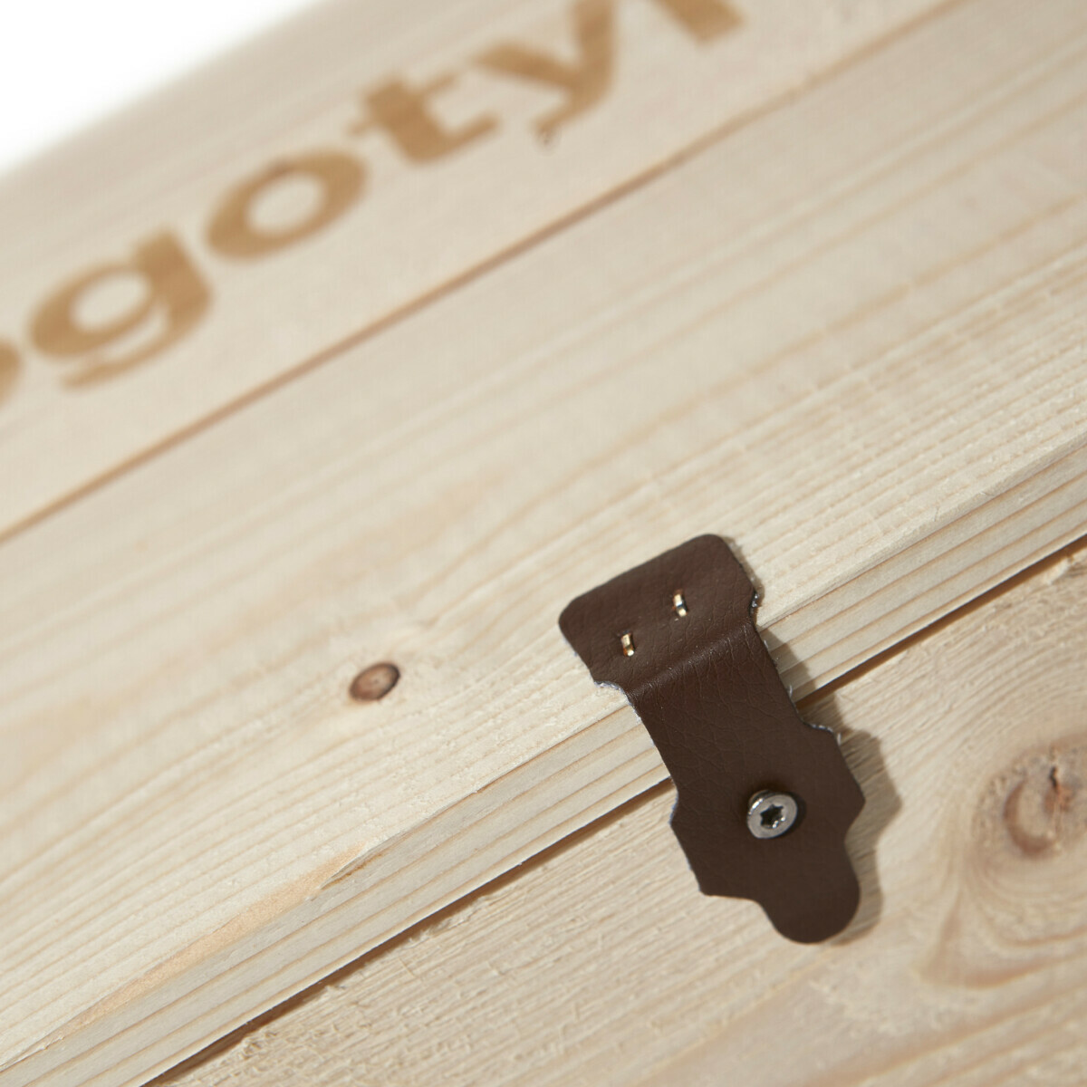 Rustika och stabila trälådor med beslag av konstgjort läder är en gedigen presentförpackning som påskgåva. En låda som passar perfekt som förvaringslåda när godiset är uppätet och dessutom blir vackrare med tiden. Lådorna finns i tre olika storlekar och fylls med inslaget godis. Trälådorna kan graveras med din logotyp/hälsning. Eller köp till ett fint påskkort.