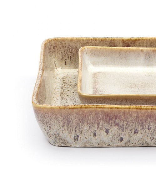 Härligt melerade ugnsformar som ger en livlig känsla. Passar lika bra i ugnen som ett uppläggsningsfat på bordet. Kommer i två pack med måtten 22x30x6cm samt 15x20x4cm. .