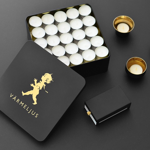Dekorativ och smart förvaringslåda för värmeljus. Lådan har plats för 100 stycken värmeljus.