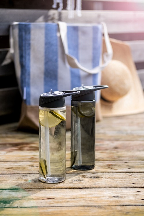 Vattenflaska tillverkad av BPA-fri TRITAN-plast och utrustad med sugrör.