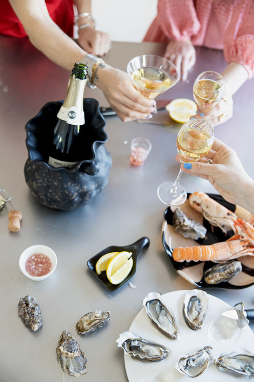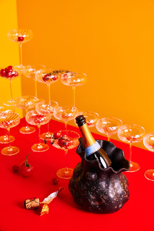 En lekfull vinkylare som fungerar lika bra som vas. En unik design i stengods.