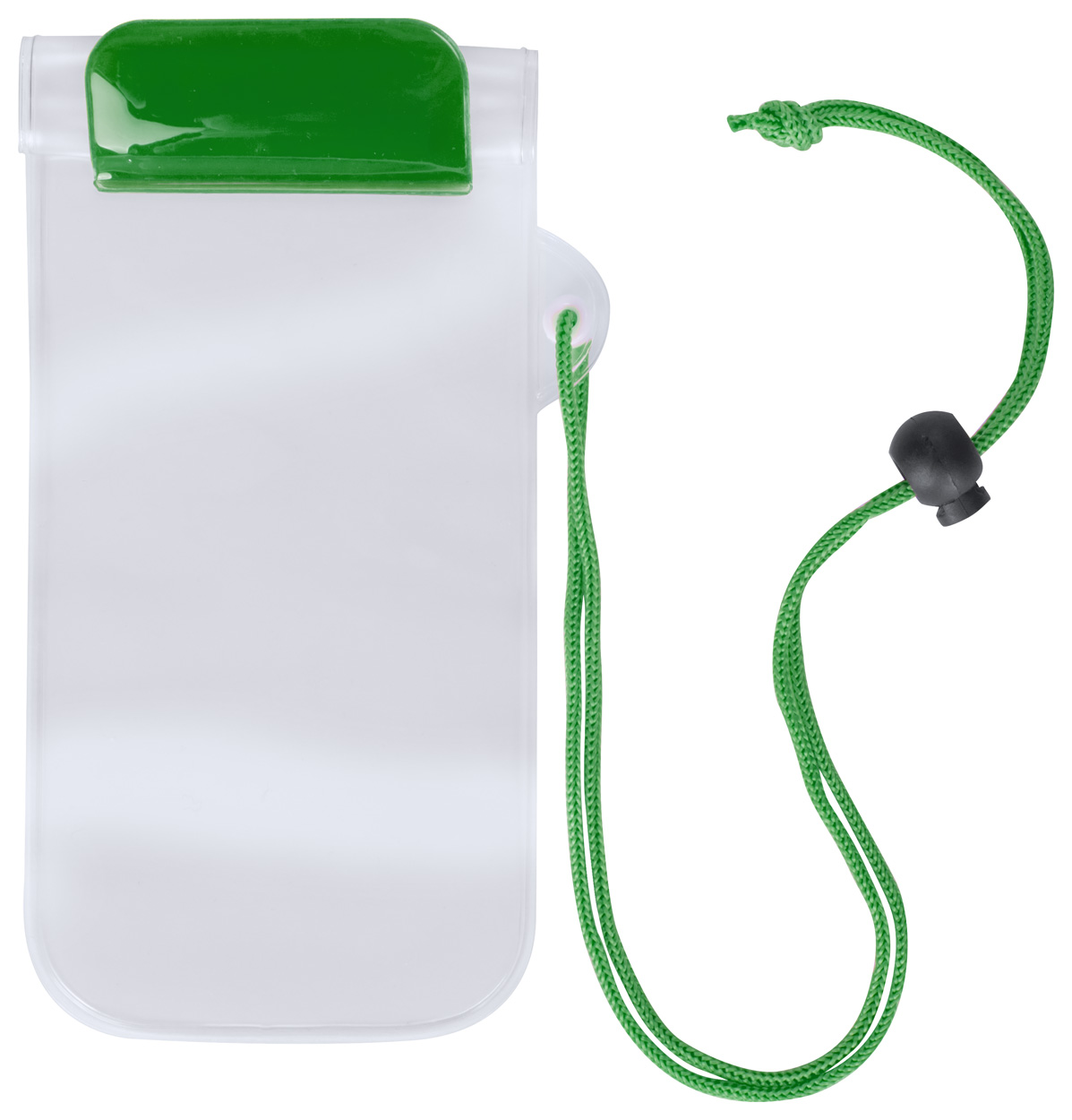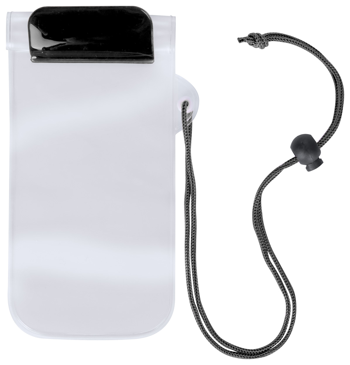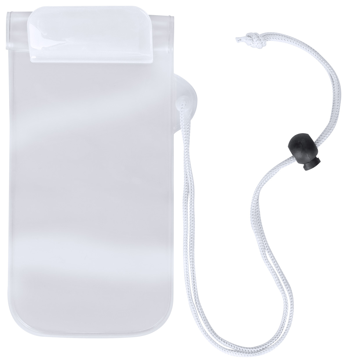 Stl: 95x230 mm. Tryckyta: 50x15 mm. Vattentätt mobilfodral med nackband